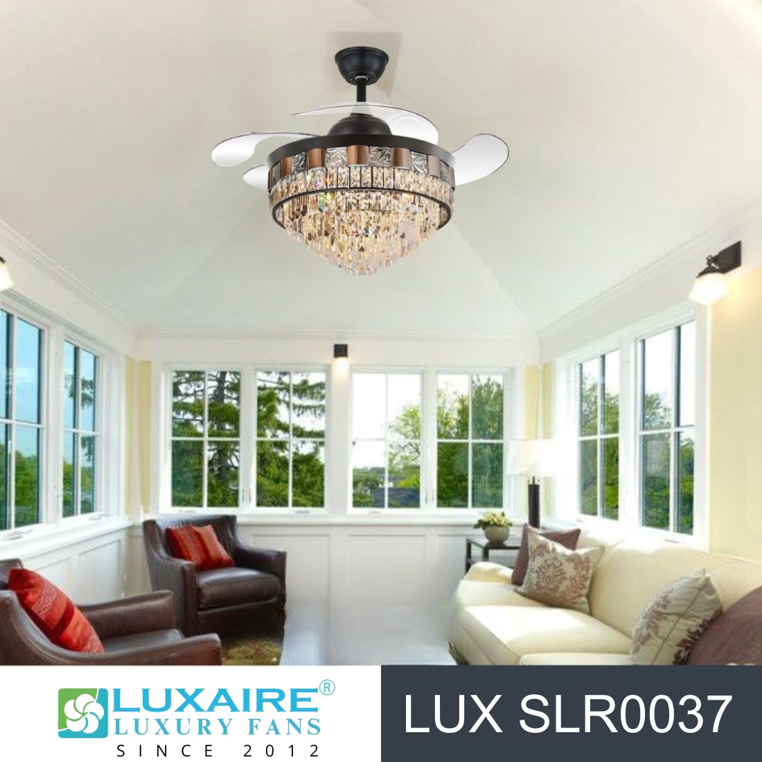 | Model | 42” Retractable Blade Luxaire Chandelier Ceiling Fan – LUX SLR0037 |